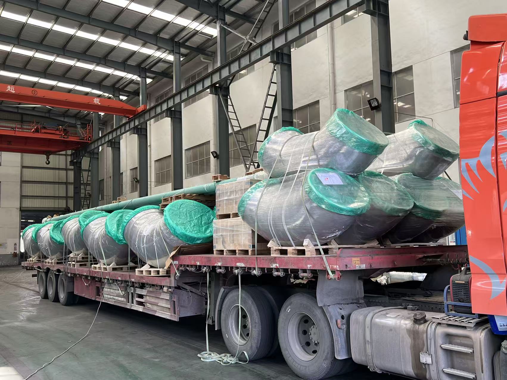 Náš tím dnes úspešne dokončil nakládku a expedíciu plného kamiónu veľkopriemerových nerezových potrubných tvaroviek. Všetky komponenty – vrátane kolien s dlhým polomerom a na mieru vyrobených cievok – boli starostlivo chránené zosilneným obalom a koncovými uzávermi, aby sa zabezpečila bezpečná preprava.
